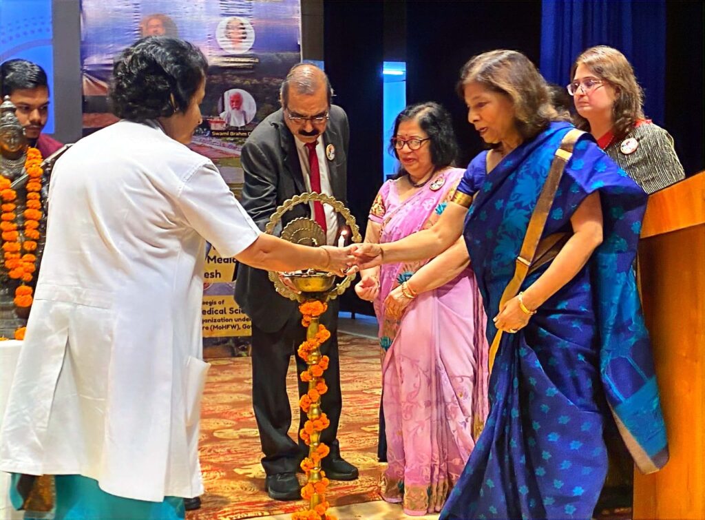 सम्मेलन का मुख्य अतिथि साध्वी भगवती सरस्वती, मुख्य वक्ता प्रोफेसर डॉ. दिगंबर बेहरा, एम्स की कार्यकारी निदेशक प्रोफेसर डॉ. मीनू सिंह, डीन एकेडमिक प्रोफेसर डॉ. जया चतुर्वेदी व चिकित्सा अधीक्षक प्रोफेसर डॉ. संजीव मित्तल ने संयुक्तरूप से दीप प्रज्ज्वलित कर किया।