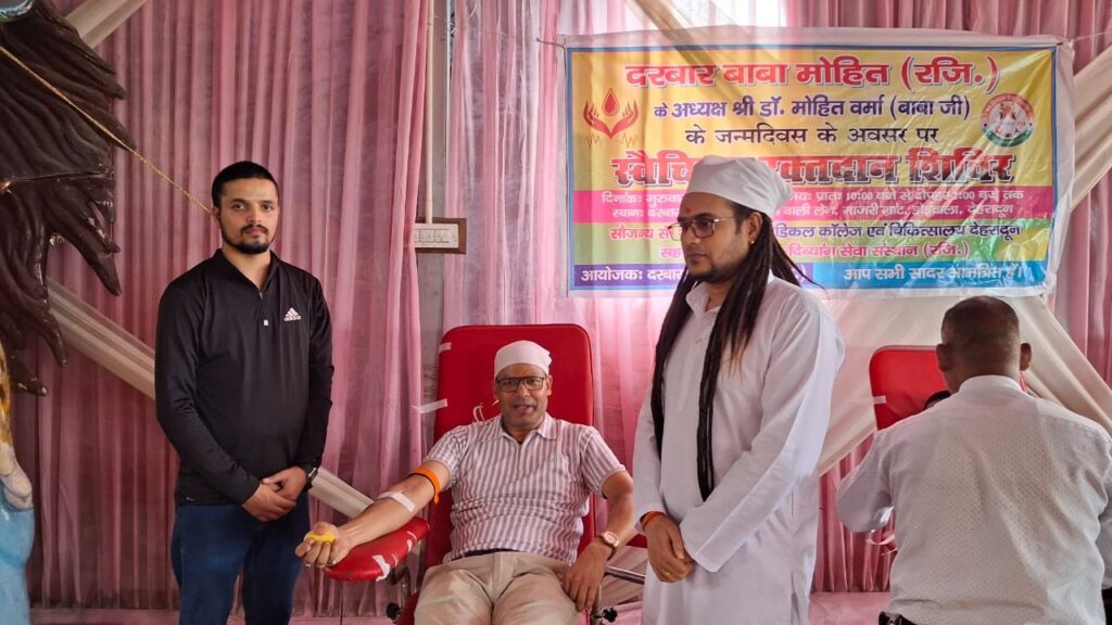 देहरादून।जीते जीते रक्तदान मरने के बाद नेत्रदान का संकल्प लें डॉ मोहित बाबा माजरी ग्रांट स्तिथ दरबार बाबा मोहित (रजि) एवं सहयोगी संस्था नव दिव्यांग सेवा संस्थान (रजि) के सयुक्त तत्वधान में दरबार के संस्थापक अध्यक्ष डॉ मोहित वर्मा (बाबा जी) के जन्मदिवस पर आयोजित स्वेच्छिक रक्तदान शिविर में सैकड़ों की संख्या में दरबार से जुड़े सेवादारो एवं क्षेत्रवासियों ने रक्तदान हेतु स्वास्थ्य जांच करवाया।