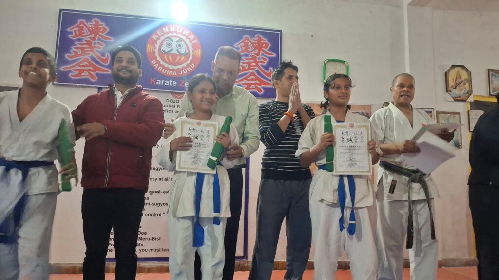 रेनबुकई कराटे एकेडमी के संस्थापक सेन्सुई कमल सिंह बिष्ट ने बताया कि बेल्ट परीक्षा में अमित ने येलो बेल्ट, शिवा विश्वास ,शाश्वत गैरोला, प्रतिष्ठा, पार्थेश, आरव रॉयल, आरोही सजवान, वरुण, अनिकेत, वेदिका भटनागर, वेदांश, स्पर्श, विमृद, दक्ष, पारुल, ध्रुव, अथर्व, काव्या, देवांश, आरव गौड़ ने येलो बेल्ट प्राप्त की।