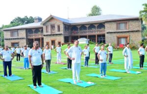 एस के विरमानी/देहरादून।मुख्यमंत्री आवास परिसर में गुरुवार को योगाभ्यास किया गया। मुख्यमंत्री पुष्कर सिंह धामी के साथ इस अवसर पर मुख्यमंत्री कार्यालय के अधिकारियों और कर्मचारियों ने भी योग किया। इस अवसर पर मुख्यमंत्री ने प्रदेशवासियों को योग को नियमित दिनचर्या का हिस्सा बनाने का आह्वान किया।