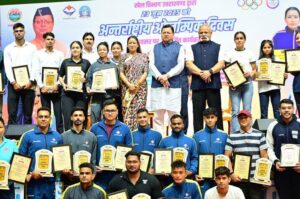 हाल ही में आयोजित 38वें राष्ट्रीय खेलों में उत्तराखंड के खिलाड़ियों ने 103 पदक जीतकर राज्य को गौरवान्वित किया। उन्होंने कहा कि प्रदेश के आठ प्रमुख शहरों में 23 खेल अकादमियों, खेल विश्वविद्यालय हल्द्वानी तथा महिला स्पोर्ट्स कॉलेज लोहाघाट की स्थापना की दिशा में तेजी से कार्य किये जा रहे हैं।