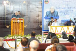 उन्होंने कहा कि शिक्षकों की भूमिका राष्ट्र निर्माण में सर्वाधिक महत्वपूर्ण है। वे केवल ज्ञान नहीं देते, बल्कि व्यक्तित्व गढ़ते हैं, नेतृत्व को जन्म देते हैं और विचारों में संस्कारों का सिंचन करते हैं। शिक्षकों का कार्य केवल पाठ्यक्रम की पूर्ति तक सीमित नहीं होना चाहिए, बल्कि उन्हें शोध और अध्यापन दोनों में दक्ष होना चाहिए, तकनीक का समुचित उपयोग करना चाहिए, विद्यार्थियों को मूल्य आधारित विचारधारा से जोड़ना चाहिए और उनमें ‘राष्ट्र प्रथम’ की भावना उत्पन्न करनी चाहिए। उन्होंने विश्वविद्यालय के शैक्षणिक और प्रशासनिक समुदाय के प्रयासों की सराहना करते हुए कहा कि यह स्वर्ण जयंती केवल उत्सव नहीं, बल्कि आत्ममंथन, संकल्प और पुनर्निर्माण का अवसर है।