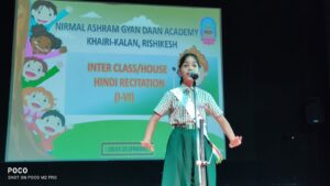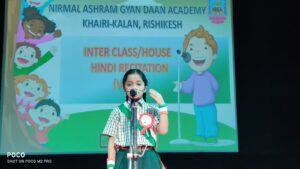 ऋषिकेश ।निर्मल आश्रम ज्ञान दान अकादमी, ऋषिकेश में कक्षा 1 से 6 तक के विद्यार्थियों के लिए अंतर सदनीय हिंदी कविता पाठ प्रतियोगिता का आयोजन किया गया। प्रतियोगिता में प्रहलाद, श्रवण, लव और कुश सदनों के विद्यार्थियों ने बढ़-चढ़कर भाग लिया।