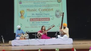 तत्पश्चात एनजीए प्रधानाचार्या डॉ सुनीता शर्मा के द्वारा सभी गणमान्य अतिथियों का स्वागत सम्मान किया गया, उसके बाद सुप्रसिद्ध भारतीय शास्त्रीय सितार वादक, गायिका एवं संगीत रचनाकार सुश्री मालविका चोपड़ा ने अपनी मधुर प्रस्तुति से सभी श्रोताओं को भावविभोर कर दिया। उनका वादन एवं गायन आध्यात्मिक वातावरण से सराबोर था और उपस्थितजनों ने तालियों से उनका स्वागत किया।