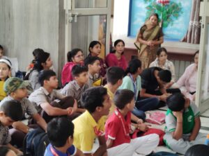 श्री कृष्ण जन्माष्टमी पर मधुबन आश्रम में चित्रकला प्रतियोगिता में विभिन्न स्कूली बच्चों ने किया प्रतिभाग