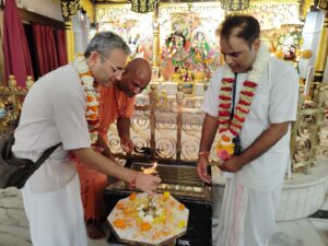 सभी बच्चों को प्रसाद भी करवाया गया कार्यक्रम का शुभारंभ मधुबन आश्रम अध्यक्ष परमानंद दास, महाराज रास बिहारी प्रभु, अजीत दास प्रभु ने संयुक्त रूप से किया।