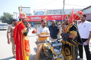 कार्यक्रम का आकर्षक विषय था — “जब स्वयं यमराज उतर आए धरती पर: यातायात नियम और सड़क सुरक्षा अभियान।” इस अनूठे आयोजन का उद्देश्य आमजन को सड़क सुरक्षा और यातायात नियमों के पालन के प्रति जागरूक करना था।