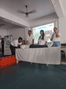 इस दौरान टीम ने स्पाइन स्टैबिलाइजेशन, सर्वाइकल कॉलर का प्रयोग, लॉग रोलिंग, स्पाइन बोर्ड एप्लीकेशन तथा बेसिक लाइफ सपोर्ट (BLS) जैसी जीवनरक्षक तकनीकों का प्रदर्शन किया और विद्यार्थियों को व्यावहारिक प्रशिक्षण दिया।