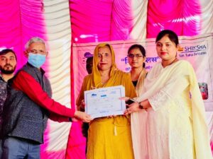 शिक्षित की गई महिलाओं एवं बेटियों को खुर्जा विधायक श्रीमती मीनाक्षी सिंह ने वितरित किए प्रमाण पत्र