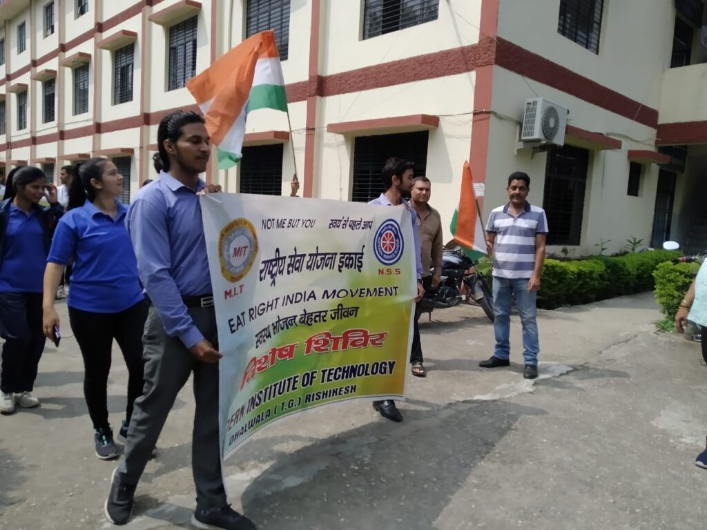 ऋषिकेश दिनांक 22 सितम्बर 2023 को स्वच्छता पखवाड़ा के अन्तर्गत राष्ट्रीय सेवा योजना एमआईटी ढालवाला इकाई के स्वयंसेवियो के द्वारा ढालवाला क्षेत्र में स्वच्छता जागरुकता अभियान आयोजित किया गया। जागरुकता रैली को संस्थान निदेशक रवि जुयाल ने झंडी दिखाकर आगे बढ़ाया।
